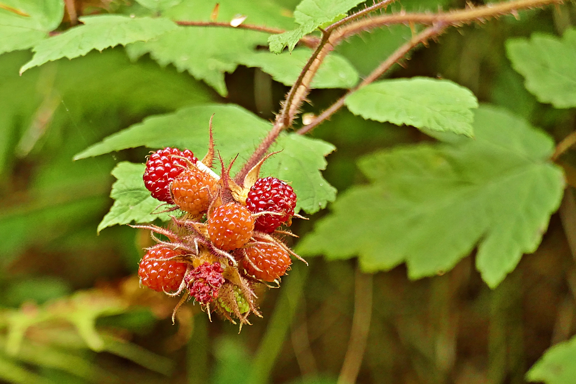 붉은가시가 달린다하여 "붉은가시딸기" 라고 부르기도한다