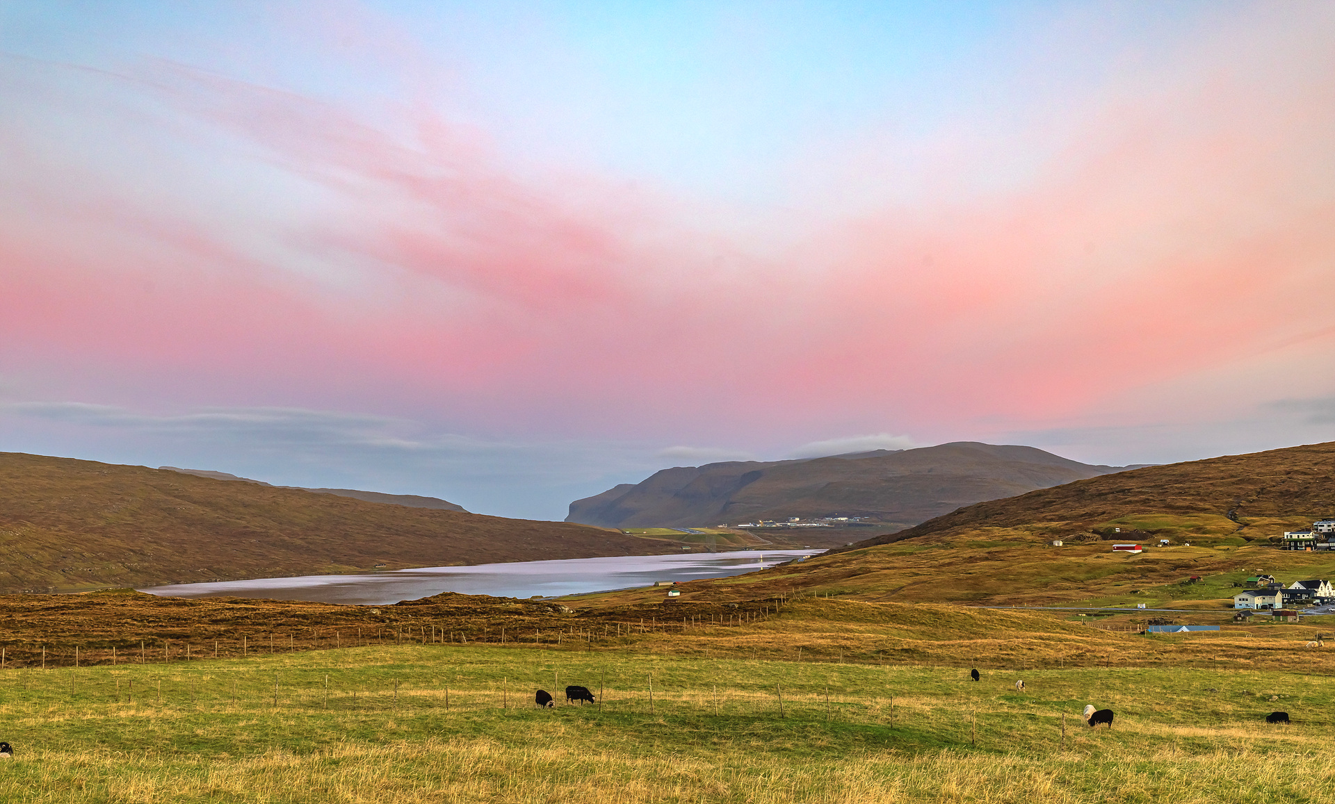페로제도 슬레이브 클리프에 가기위한 트래킹중에 만나는호수 이길을 끝없이 걸어야 한다