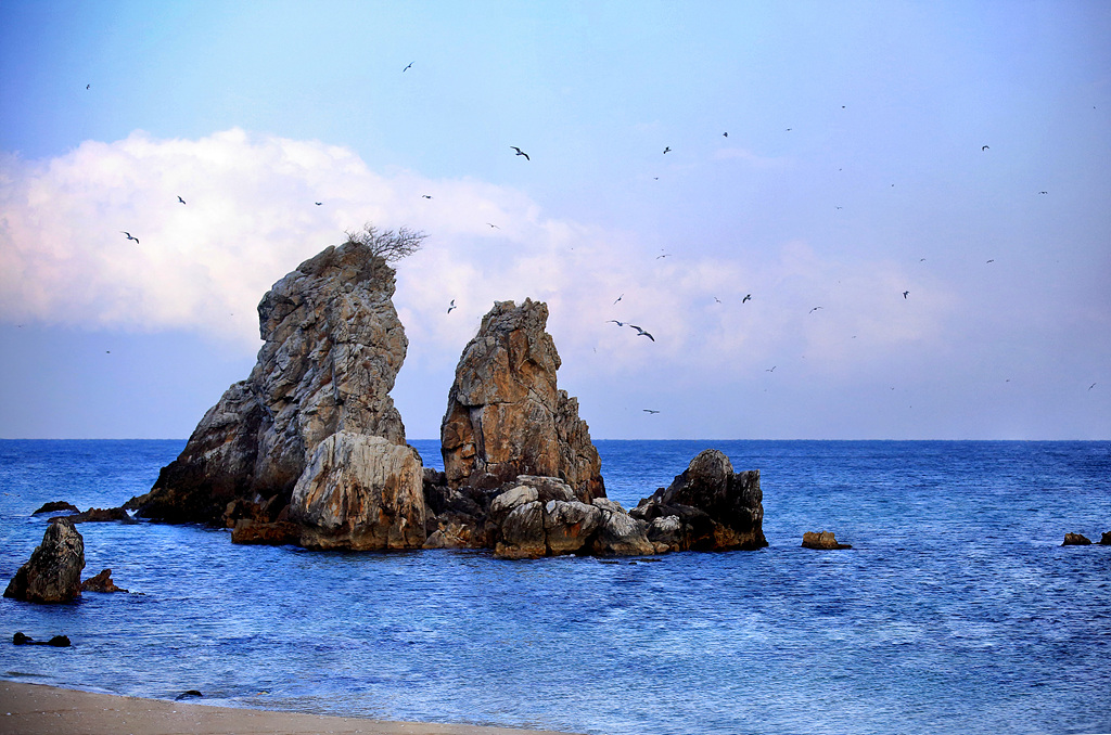 눈보라가 쏟아졌다 부지런히 차를 몰아 추암에도착 삼각대를펴고 한숨 돌리는사이 눈이 그쳤다 그리곤 했님이 방긋 웃음 짓는다 추암 설경 담으려던 시도가 또 무산 되었다 2021-01-28