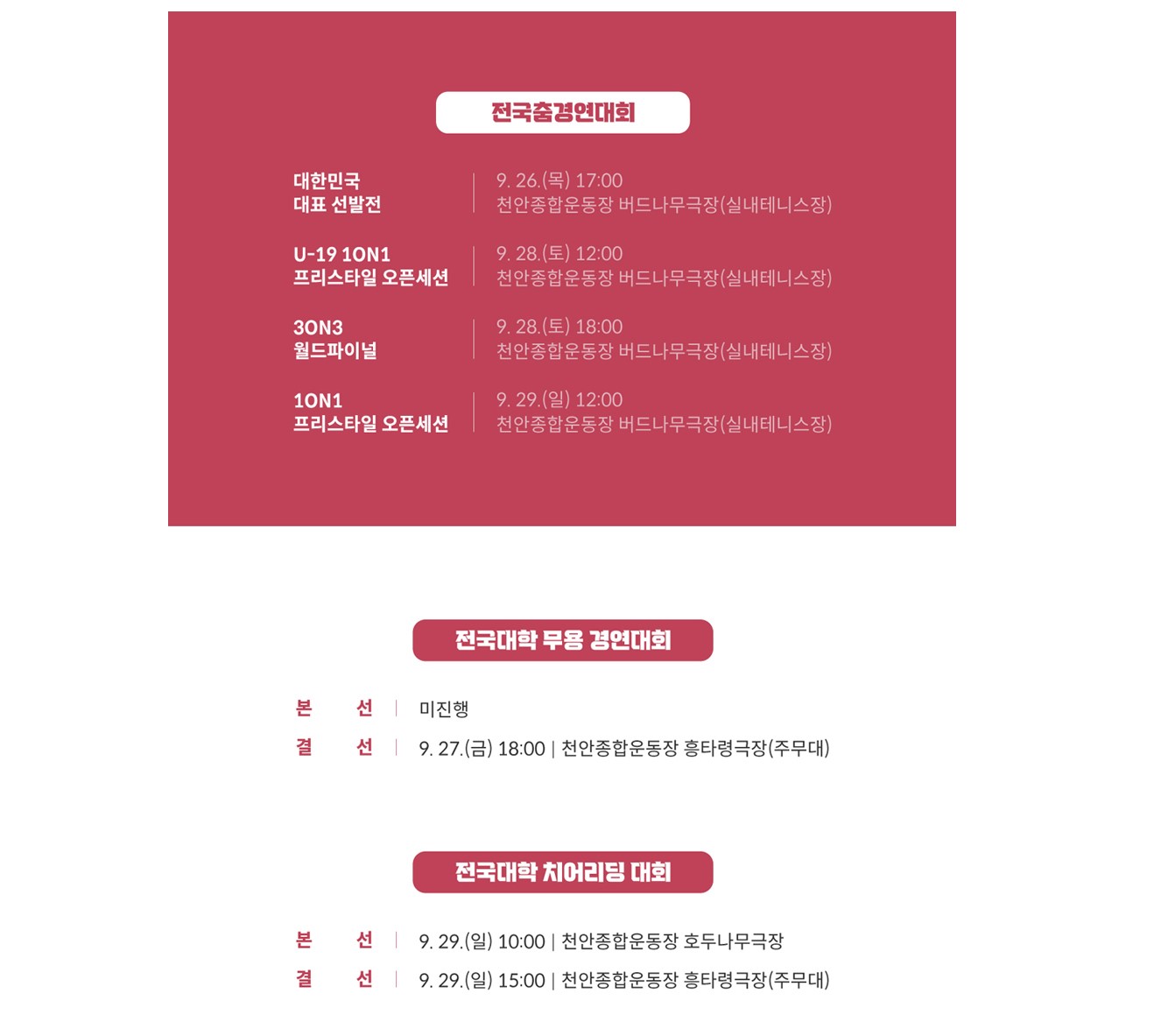 2)집합 장소:천안 종합운동장