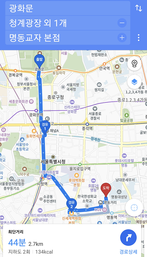 (추천코스 2) 광화문~청계광장~시청~소공동(신세계)~ 명동거리