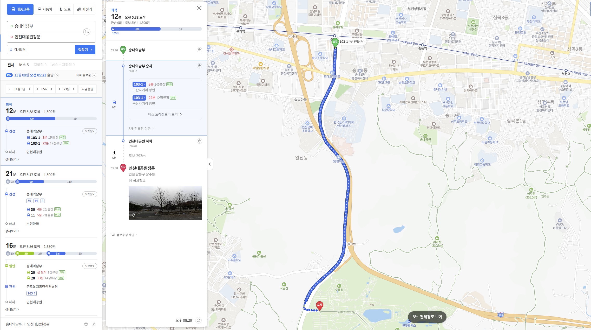버스 송내역에서: 8,11,14-1,  16-1, 30, 47번 등이 있습니다.