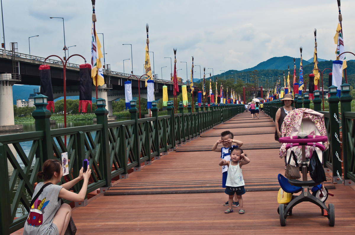 멈마와 아이들의 배다리 구경에 기념사진 찰칵....^^