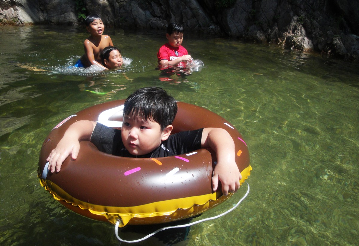 시원한 계곡과 바다를 오가며 퓨브놀이가 한창즐겁습니다.
