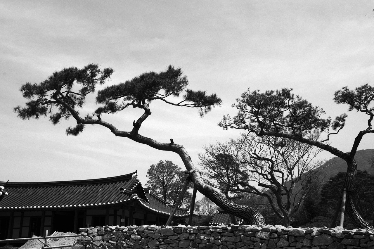 아산 외암 민속촌 마을 집안의 두 그루 소나무..