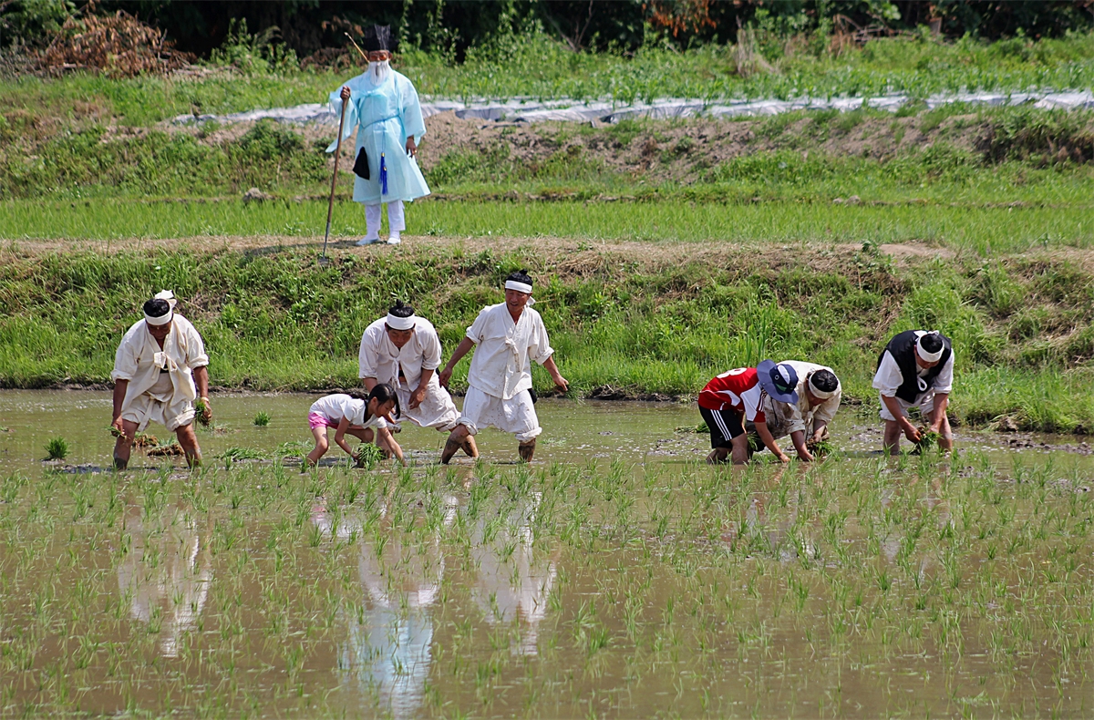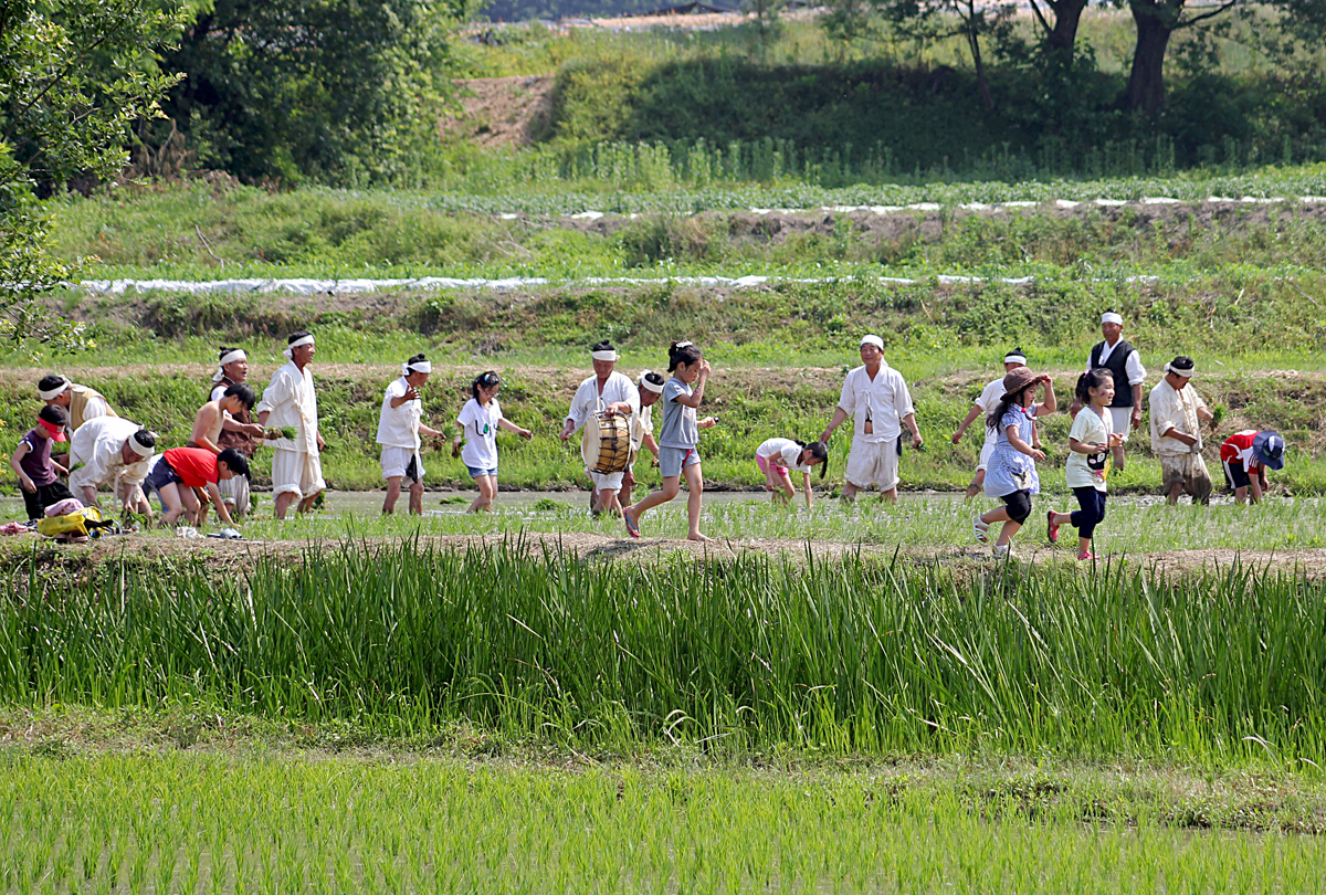 아이들이 모내기 체험을 하고 있습니다.