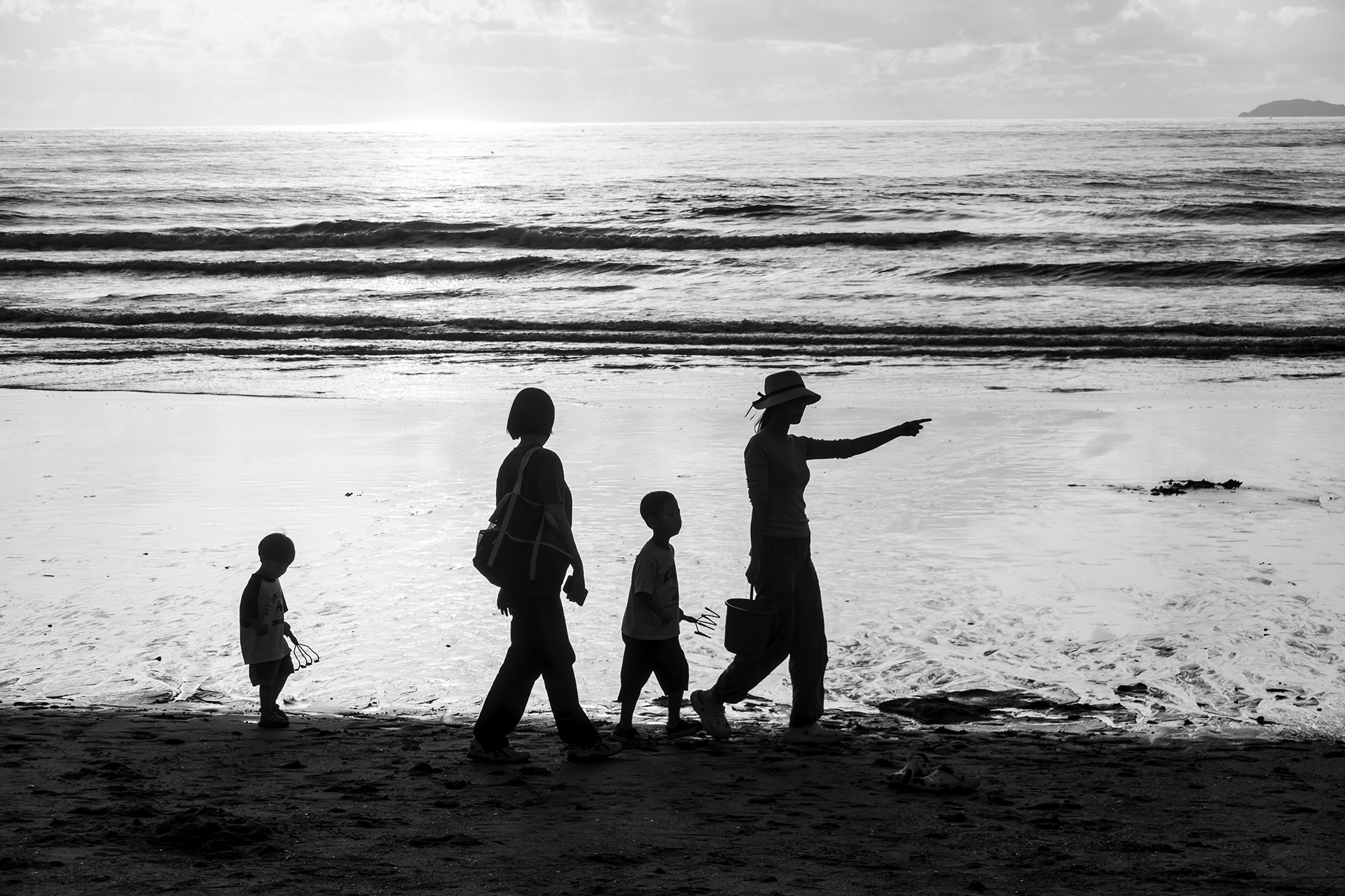 가족이 해변 나들이를 왔어요