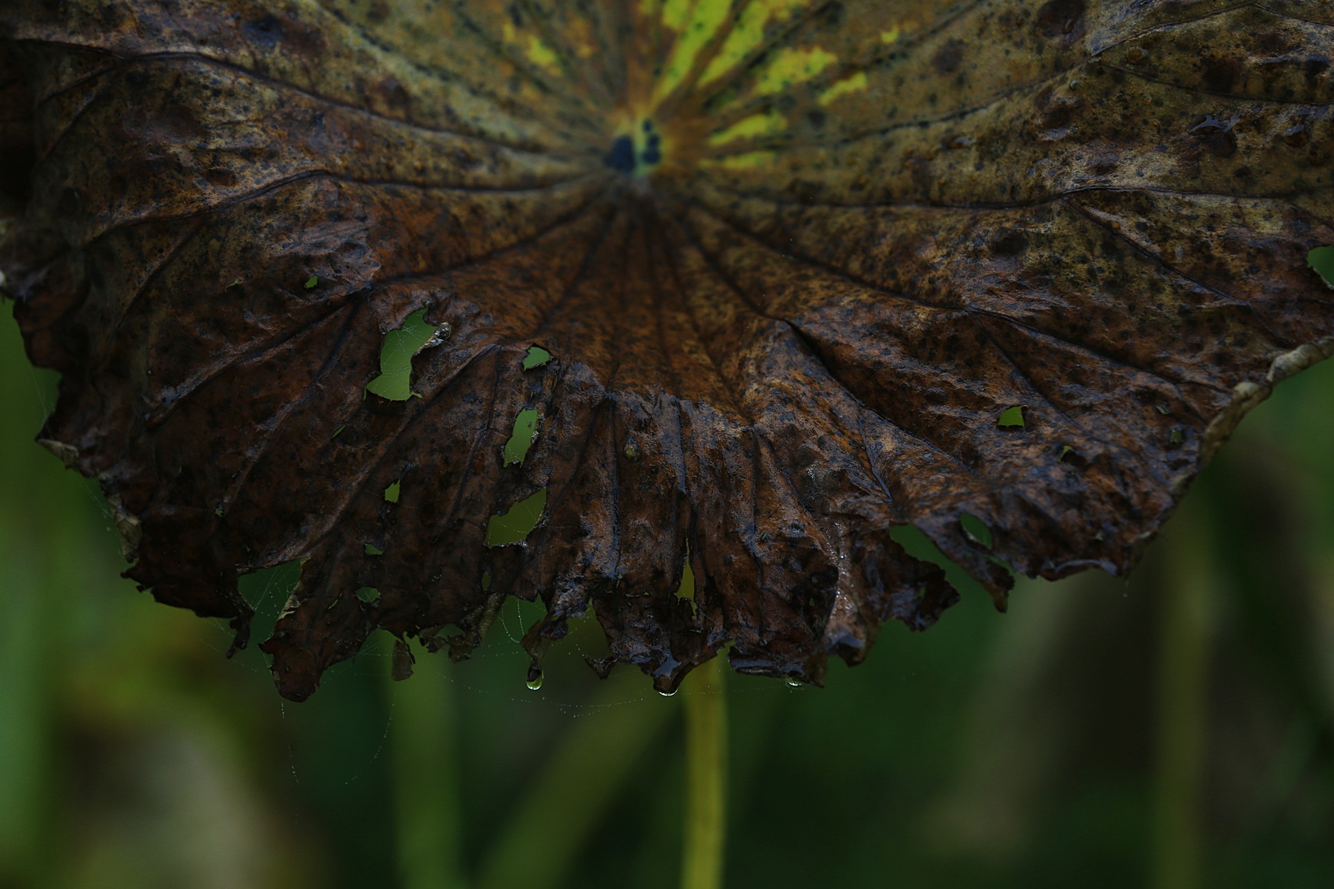 너덜너덜 헤진 비젖은 연잎은