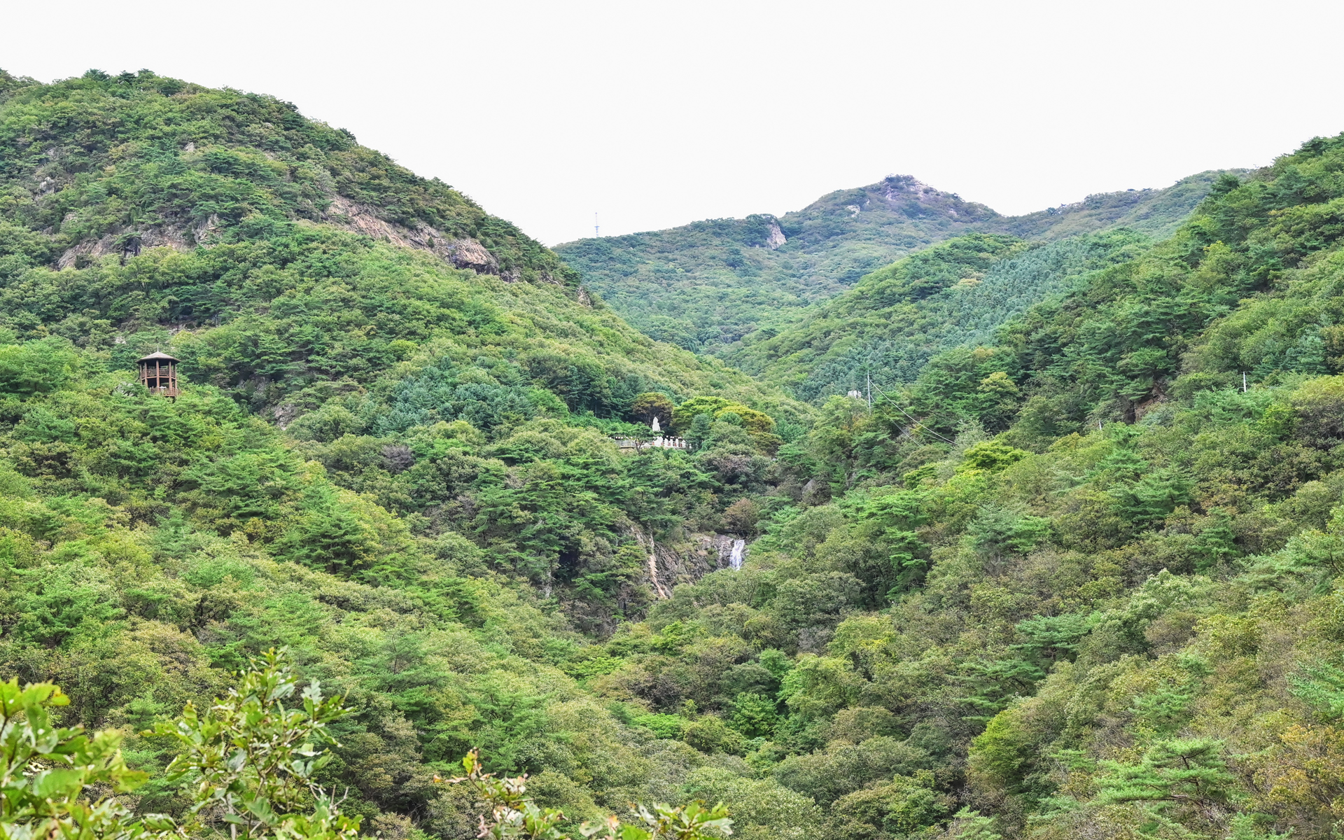 법륜사 백옥관세음보살님과 운계전망대,운계폭포가 보입니다.