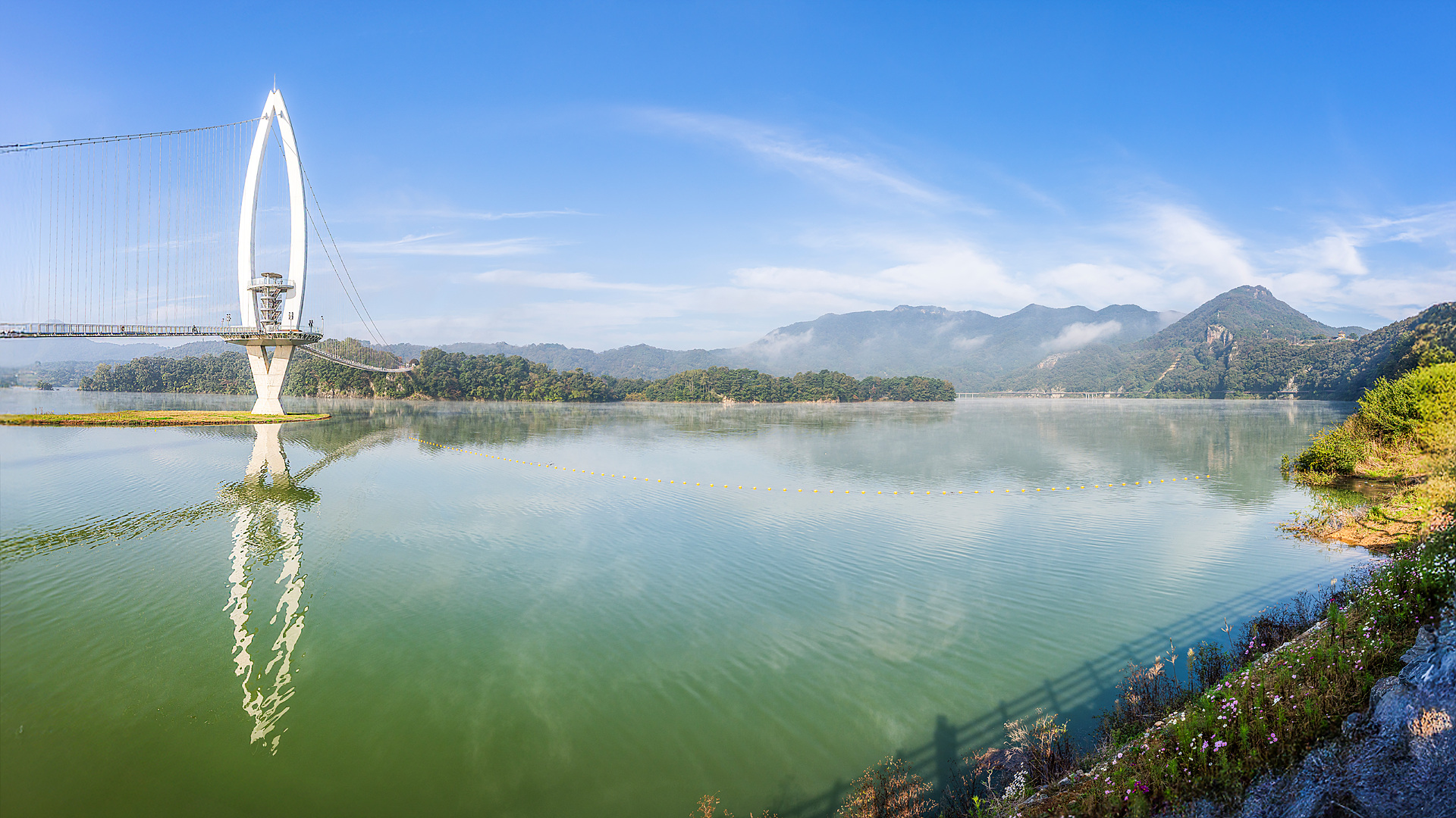 새벽 물안개가 흰꽃처럼 피어나 국사봉에 다다른다.