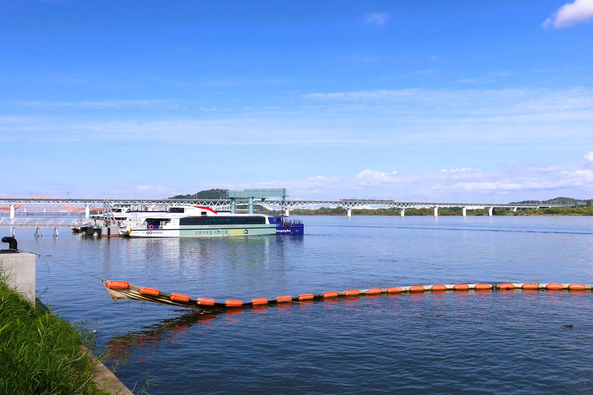 마곡 선착장에서 휴업중인 한강 수상버스와 전철