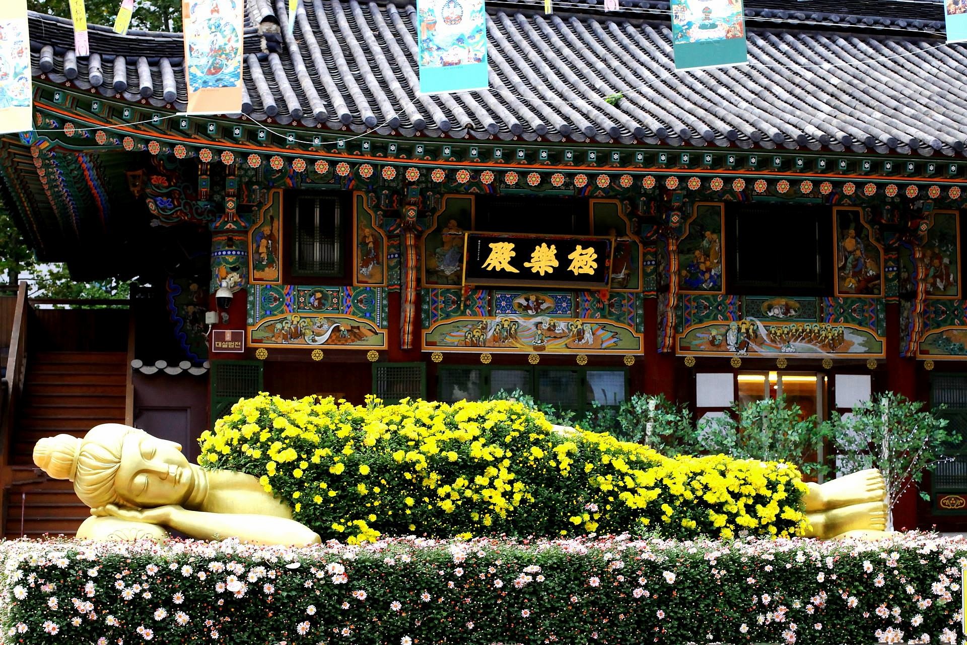 침대 와 이불을 .. 가을 국화꽃 으로