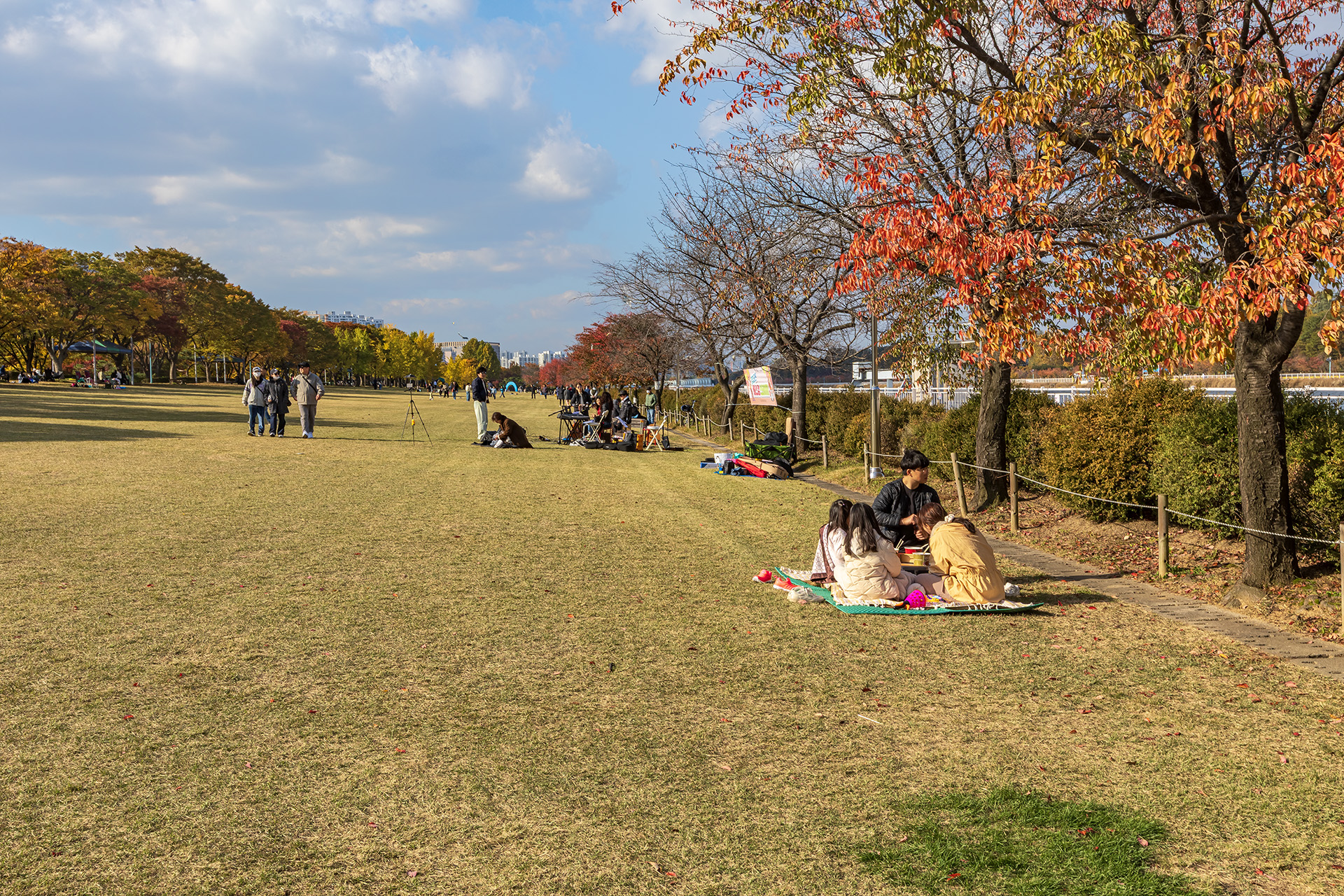 어느가을날공원에서여가를즐기는사람들