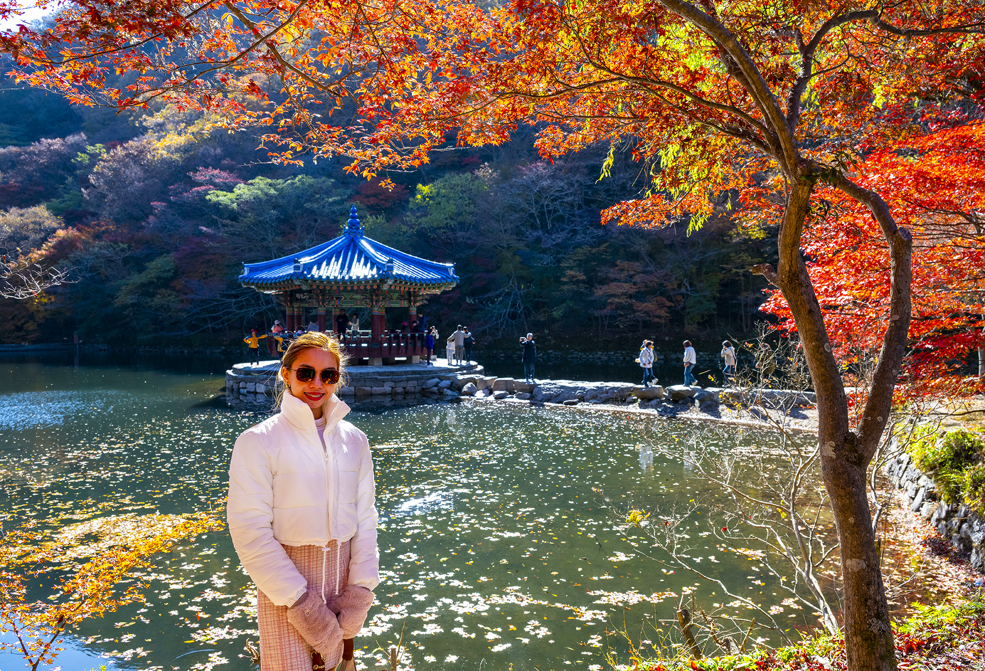 우화정 배경으로 모델을 서준 미인의 자태와 아름다운 내장산 단풍!!