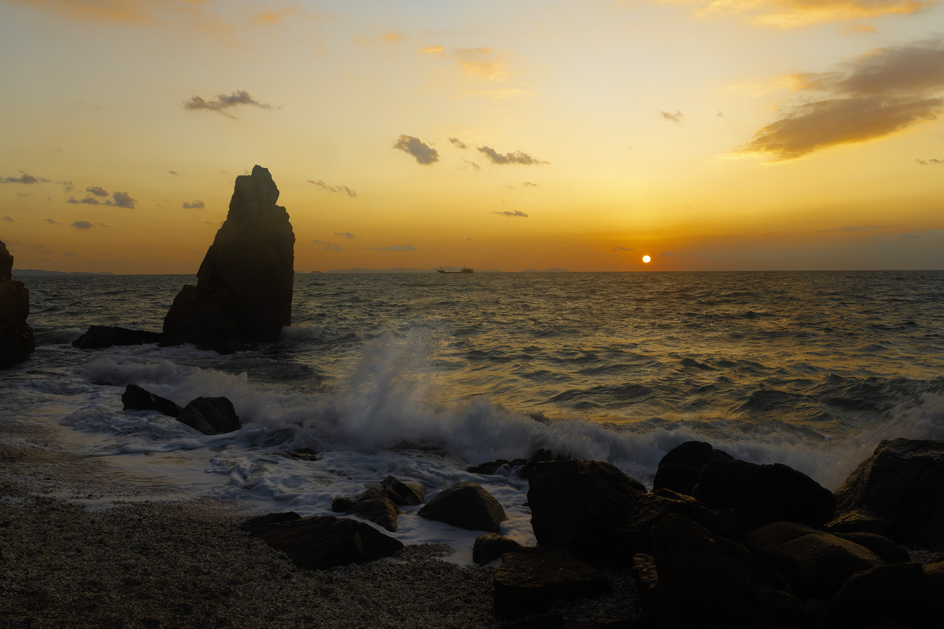 파도치는 일몰 풍경