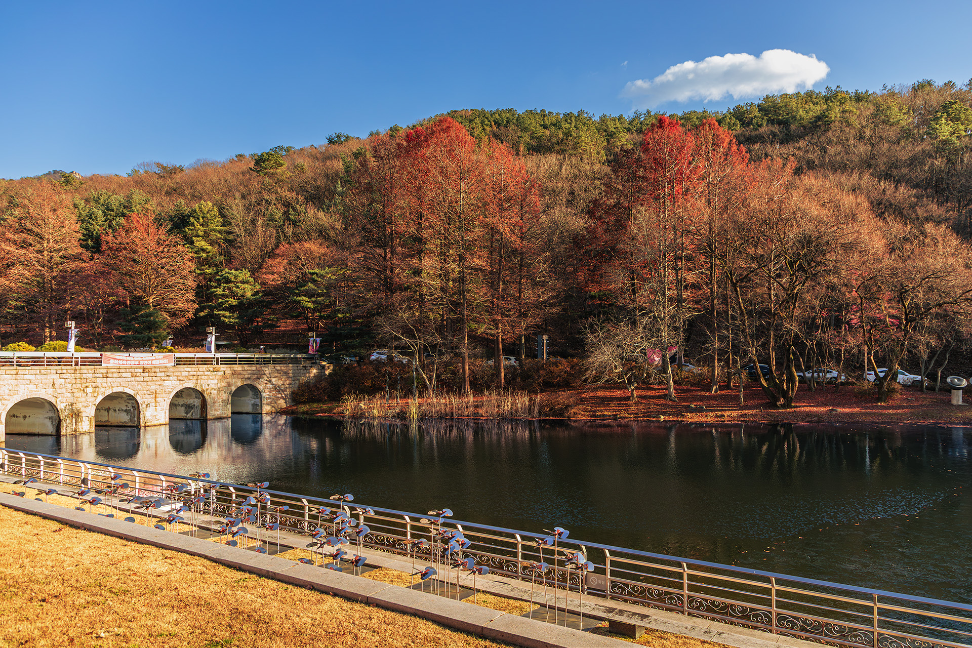 몇 그루의 메타쉐콰이어가 본연의 색을 띄우면서 가을을 남깁니다.
