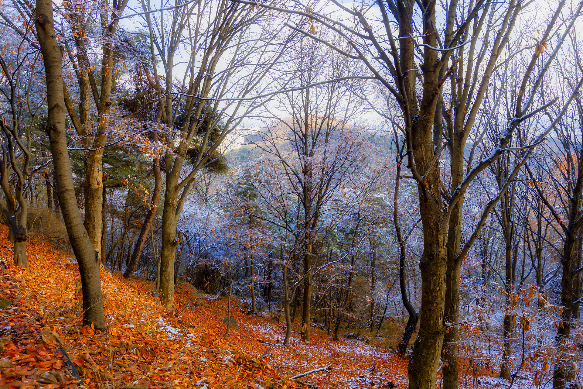남산의 숲, 가을 색과 겨울 색이 어우러진 날~
