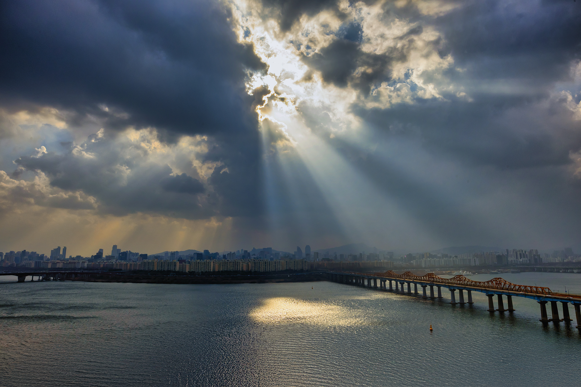 강풍이 몰고 온 눈구름이 현란한 빛 내림을 연출했다~