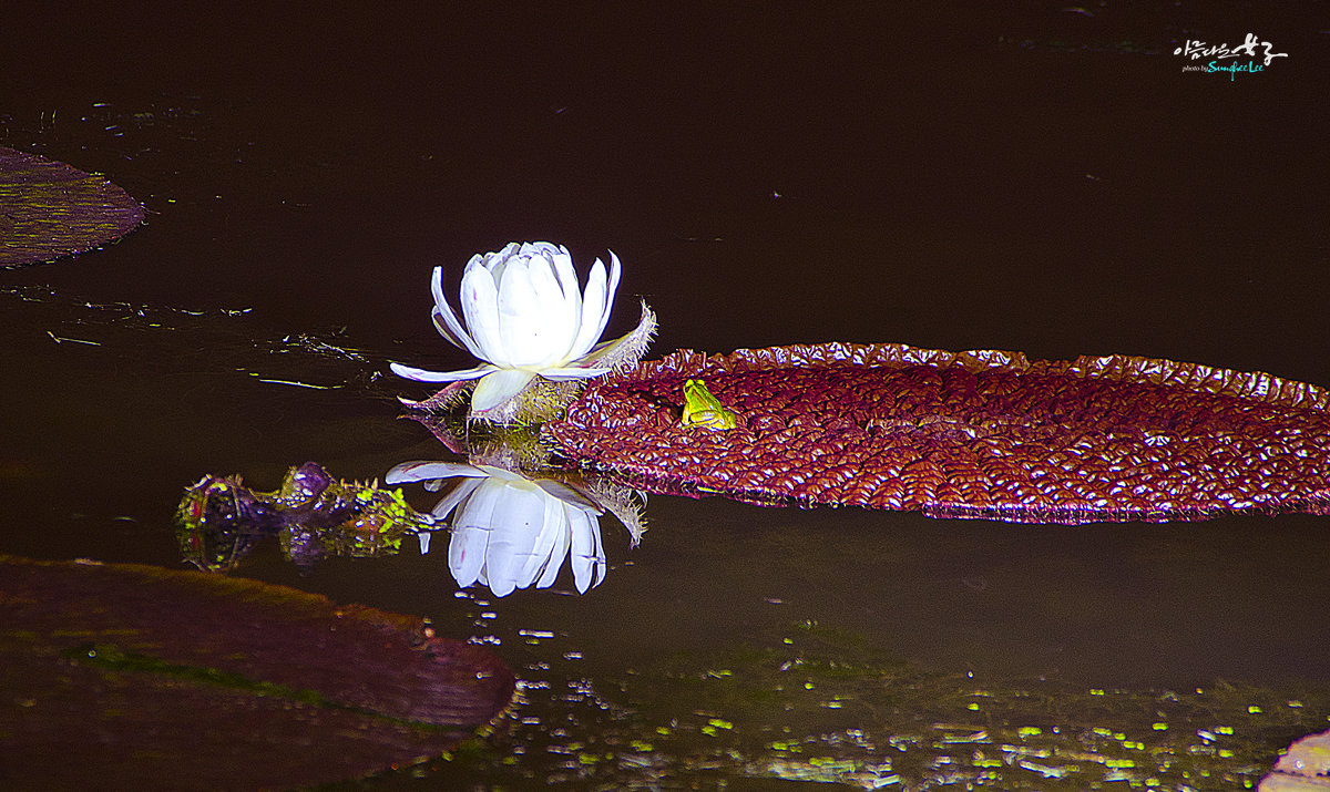 우연히 개구리 한마리가 빅토리아를 지켜보는 듯한 장면을 잡게 되었네요.