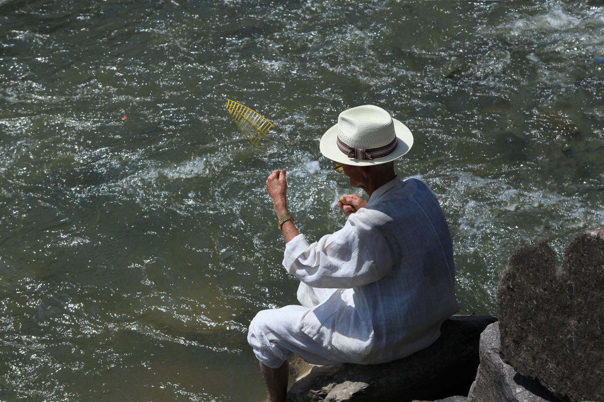 진천농다리 견지낚시 하는 노인