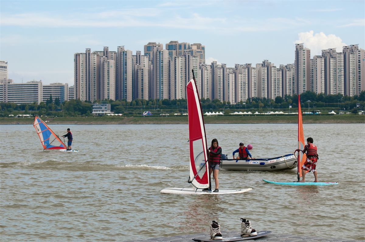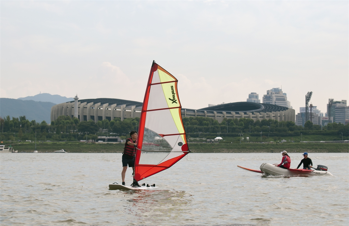 뚝섬 요트장에서 요트실습을 받는 학생들의 모습입니다.