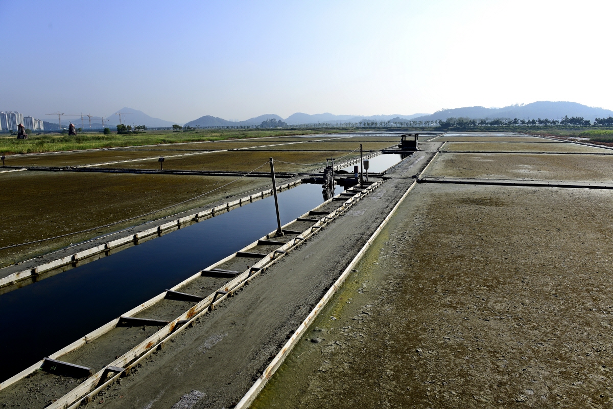 염전의 물은 담지않아 동쪽의 수차가있는