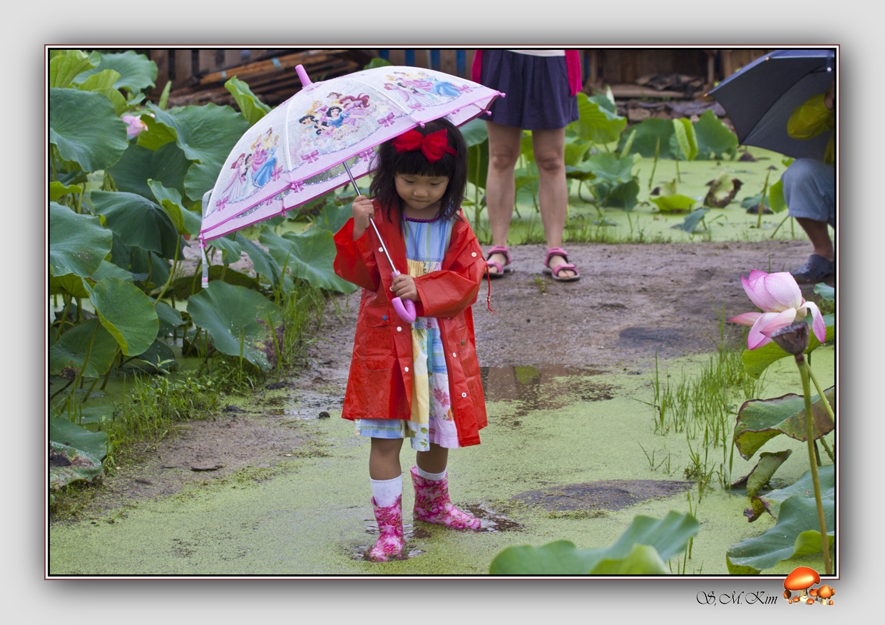 비오는 날 관곡지 연밭에서 만남 꼬마숙녀