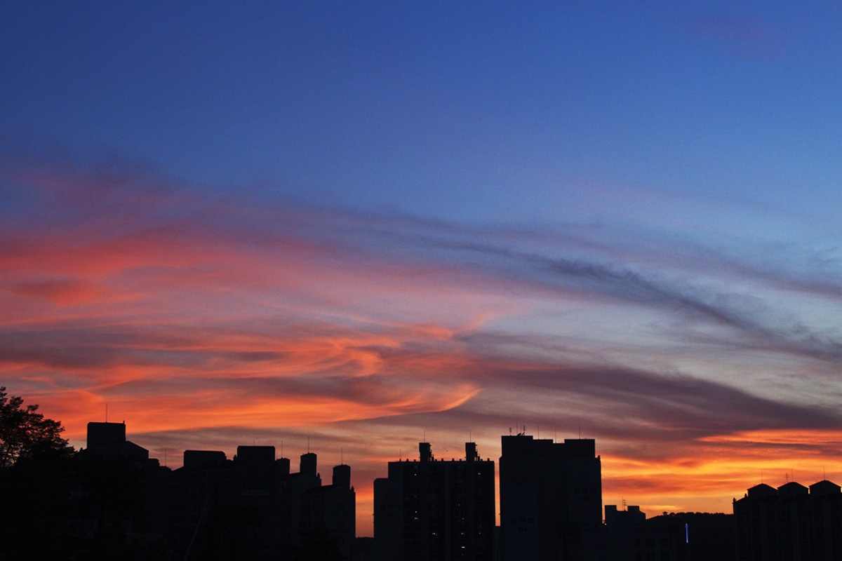 베란다에서 본 노을