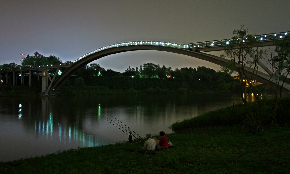 부부가 나와서 낚시를 하며 열대아를 식히고 있다.