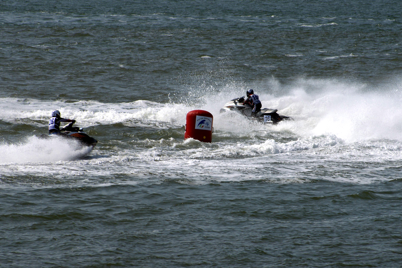 푸른바다 위 하얀 물보라 펼친 모터보드...