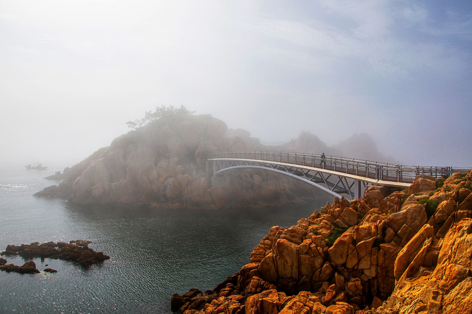 해무에 덮힌 대왕암입니다.
