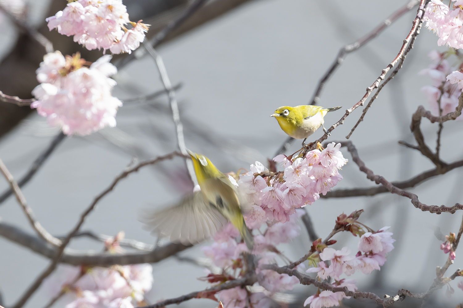 부산 배화학교 벚꽃이 만개하여 동박새가 벚꿀을 찾아 날아들고있네요.