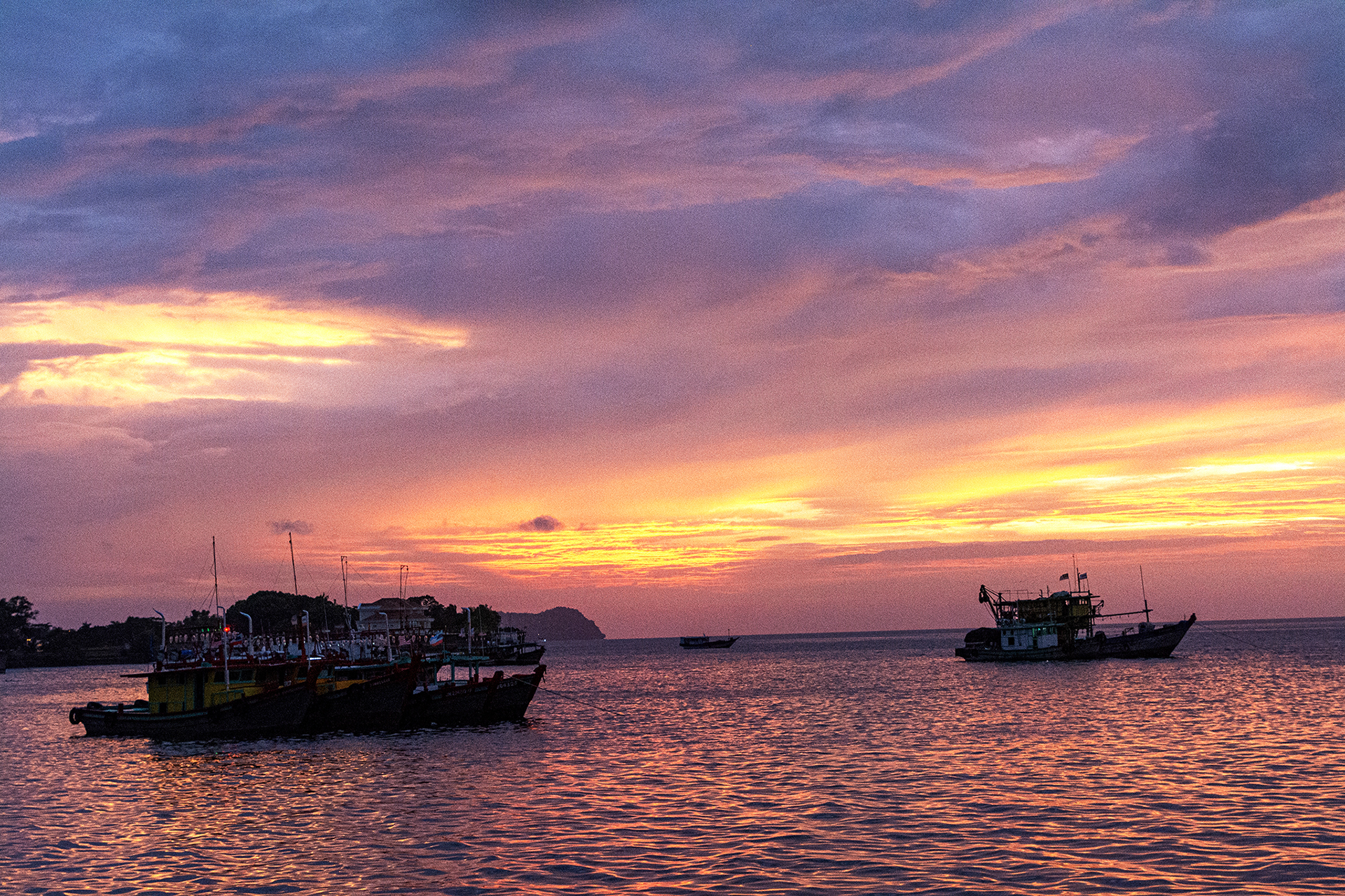 어느 포구의 일몰에는 붉은 빛이 진하게 보인 순간에...