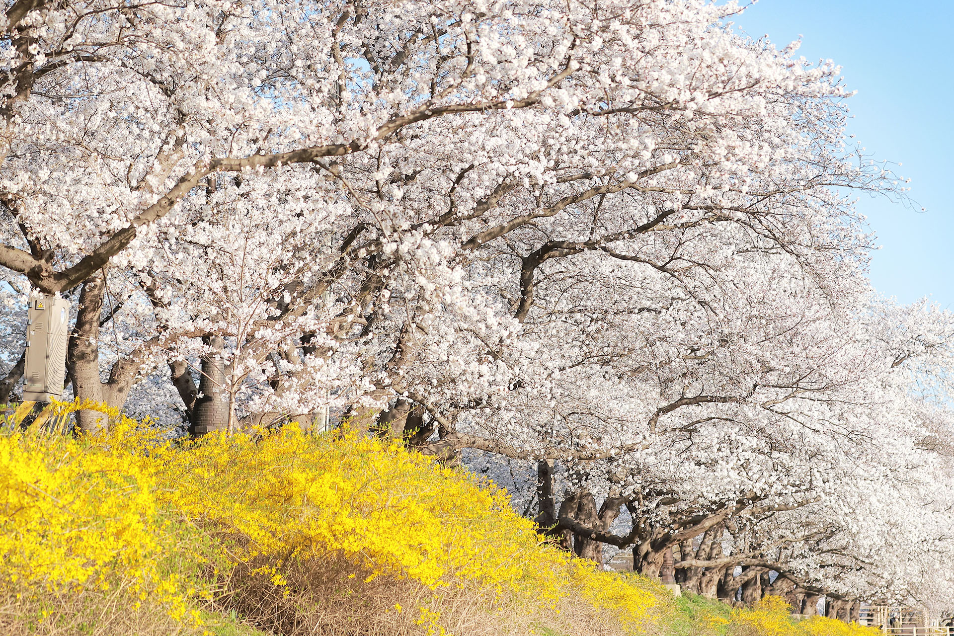벗꽃길과 개나리