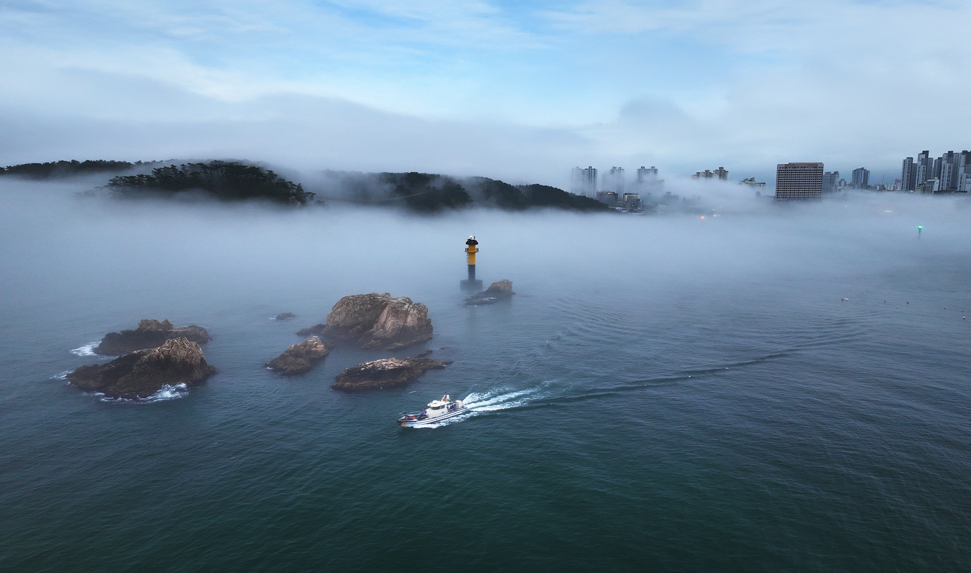 민섬과 대왕암공원에 내리는 해무...