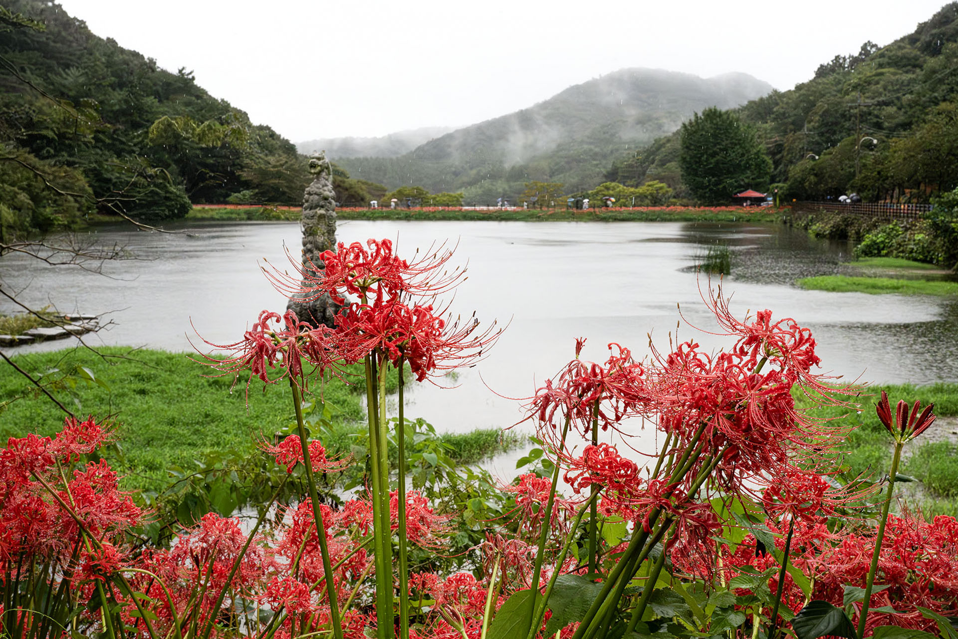 비 내린 용천사 붉은 꽃무릇이 젖어 피었다. 닿지 못한 사랑처럼 잎은 없고 마음만 남았네......