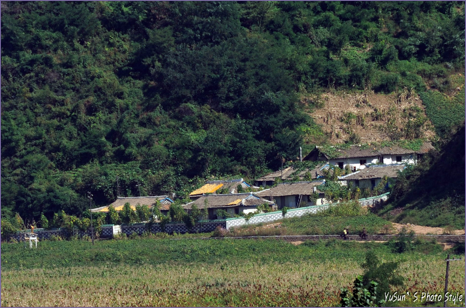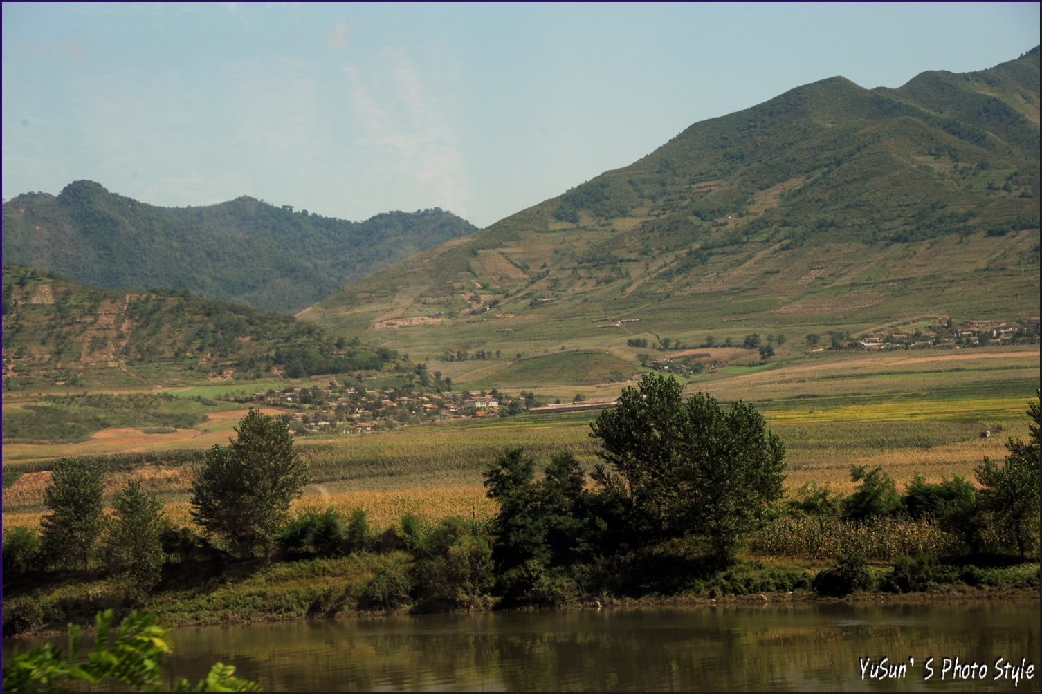 중국쪽 압록강에서 바라본 북한 마을 입니다