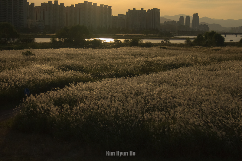 따뜻한 기운이 억새풀 위에 사뿐히 앉아있습니다.