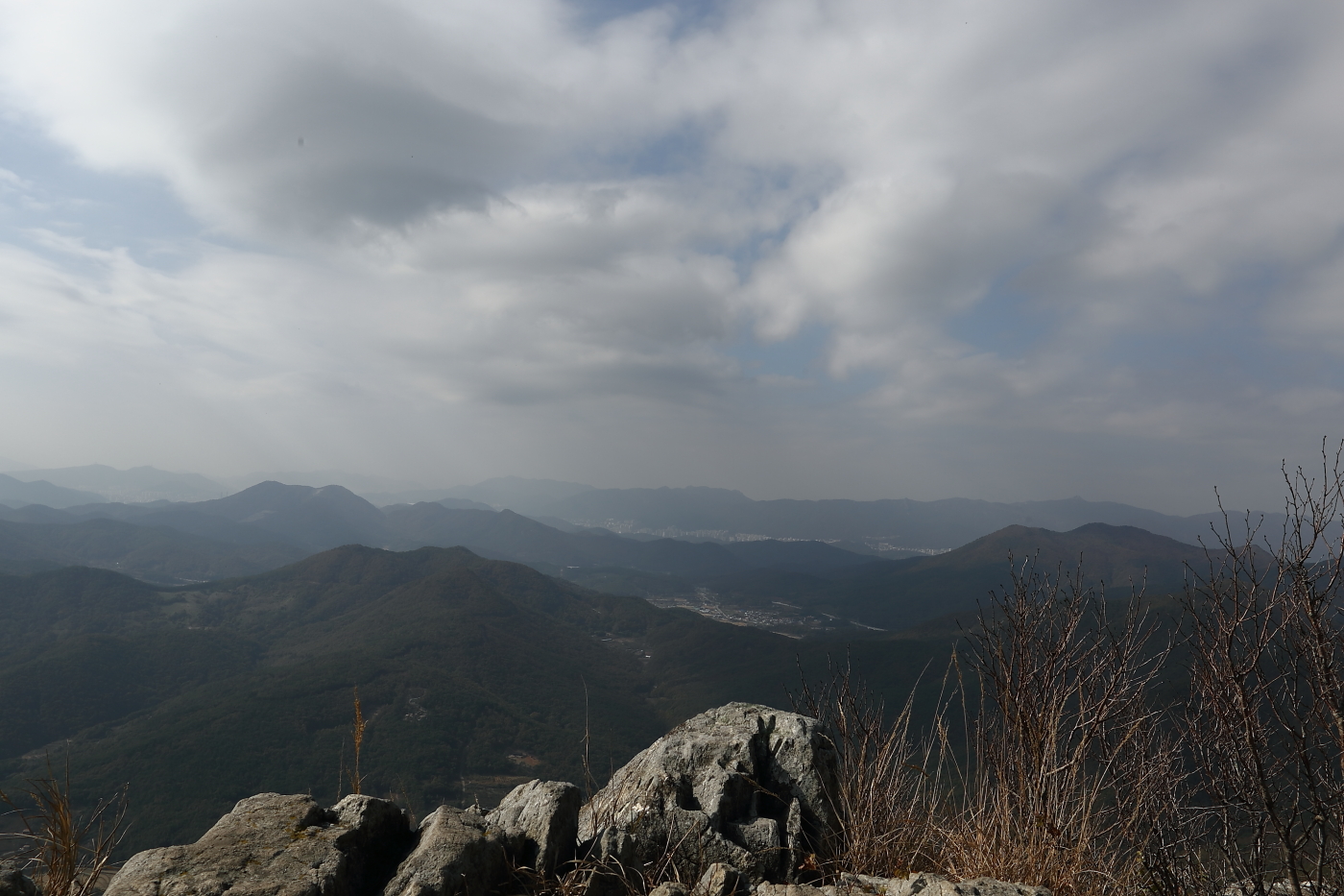 지난주 토요일날 명선도 일출 허탕치고 혼자 달려간 달음산 정상에서 부산 방향으로 느낌이 좋아서 담아 보았습니다.