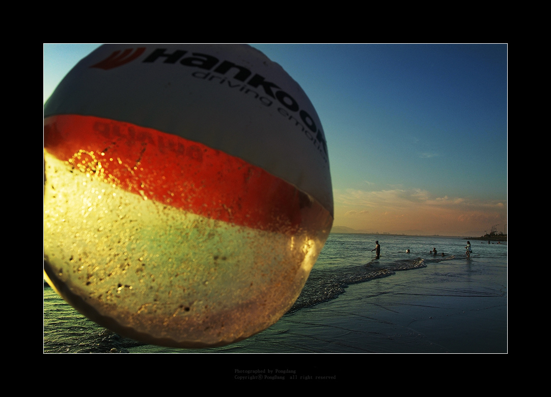 < 주인없든 비치볼을 왼 손에 들고 찰~칵 >