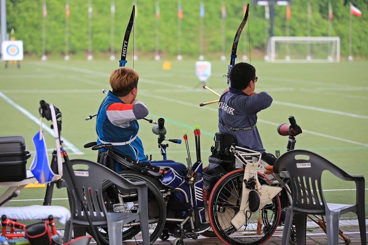시위를 떠나기 전의 두 선수의 모습입니다.