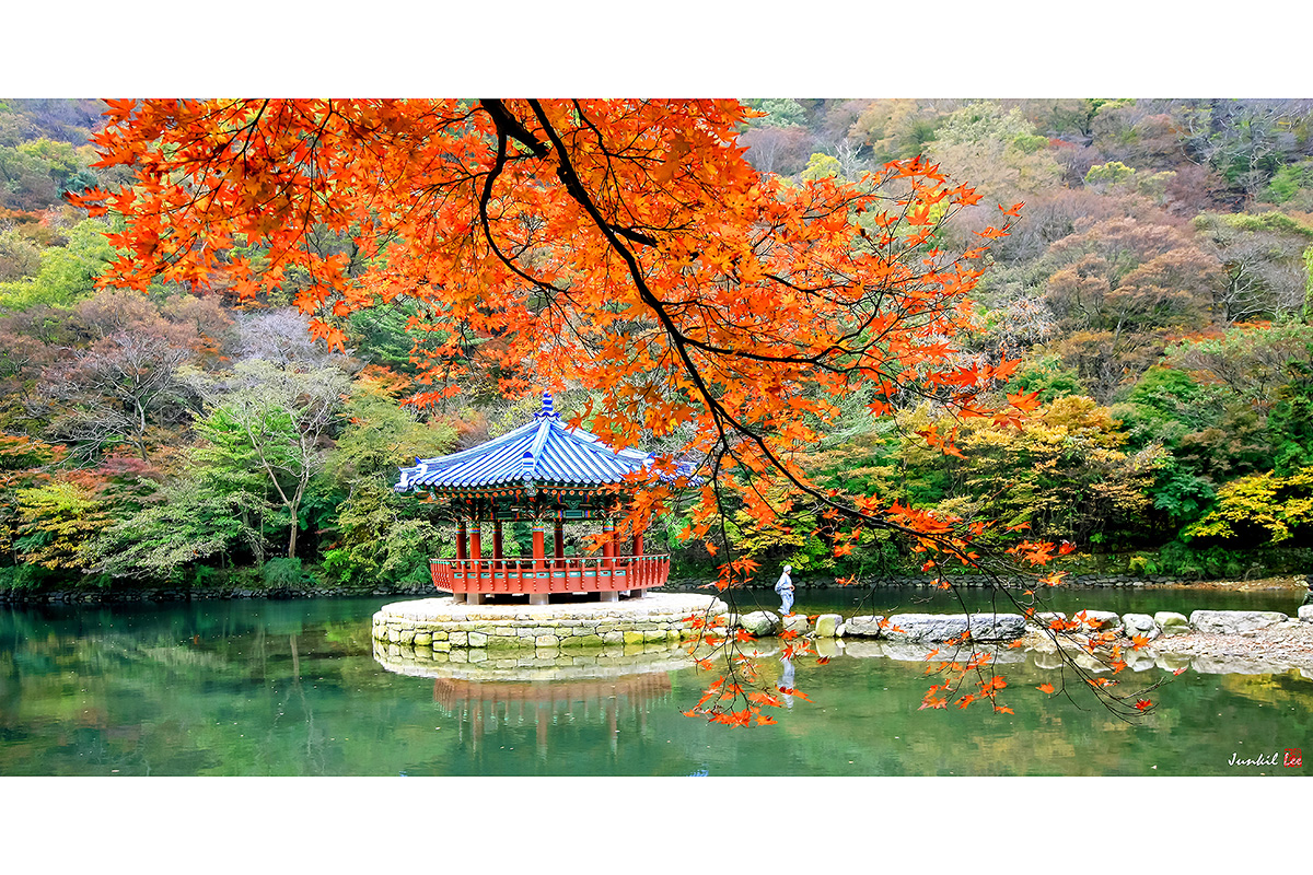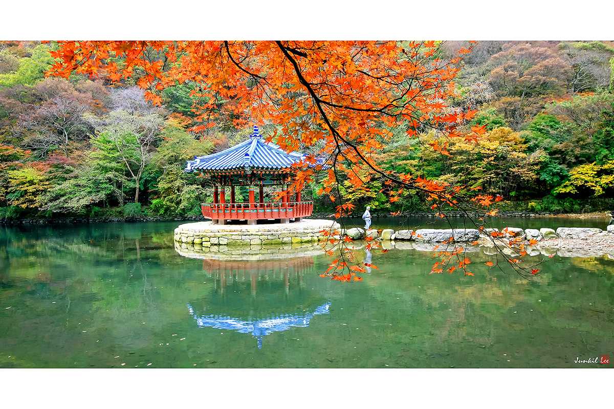 단풍나뭇잎들이 고운 색으로 옷을 입은 우화정의 가을