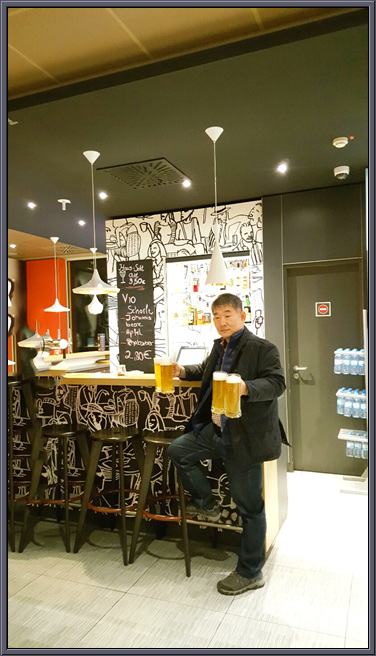 여행객들과 하루의 일과를마치고 생맥주마시면서 피로를 풀던중 무료배달서비스