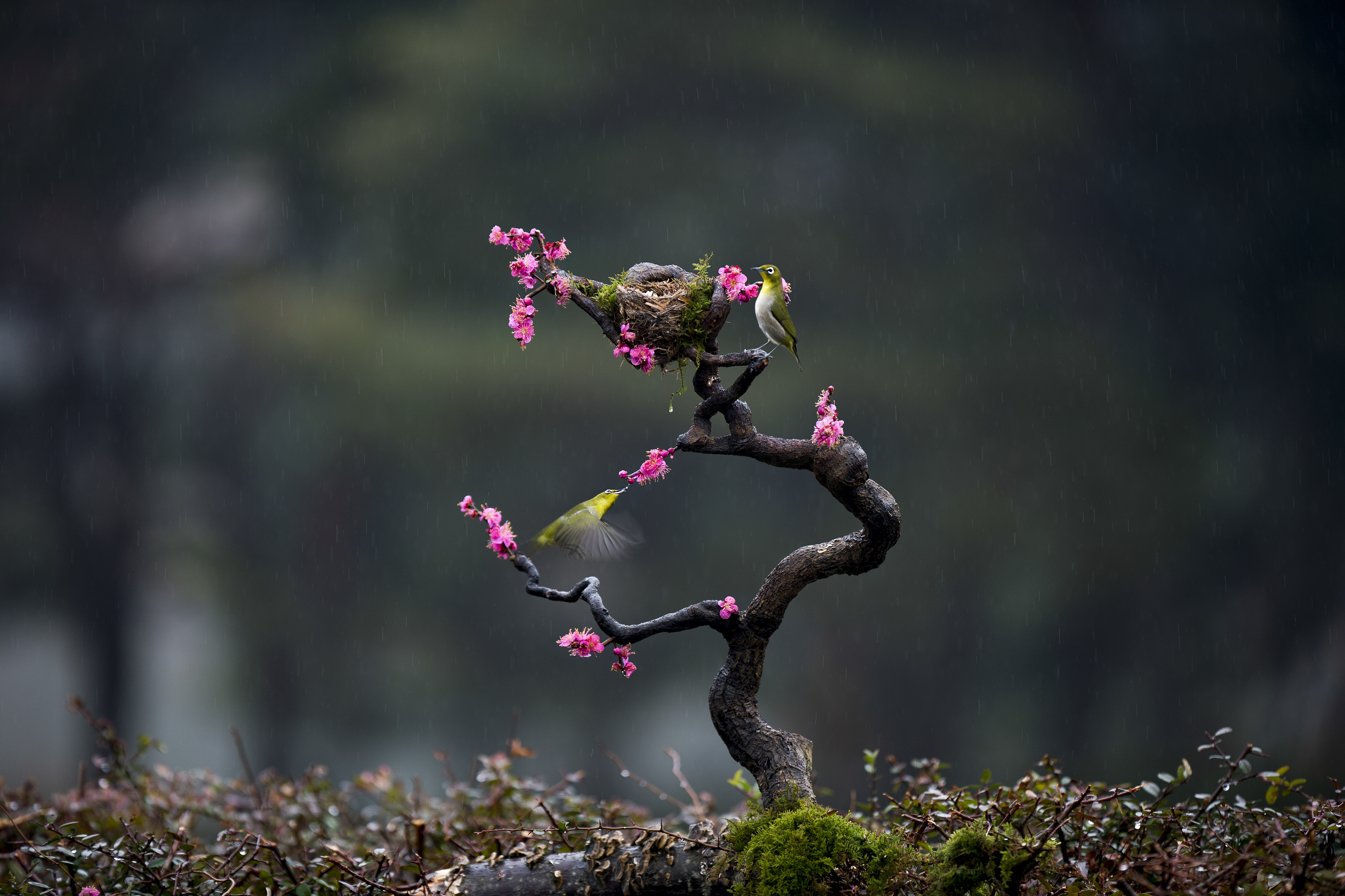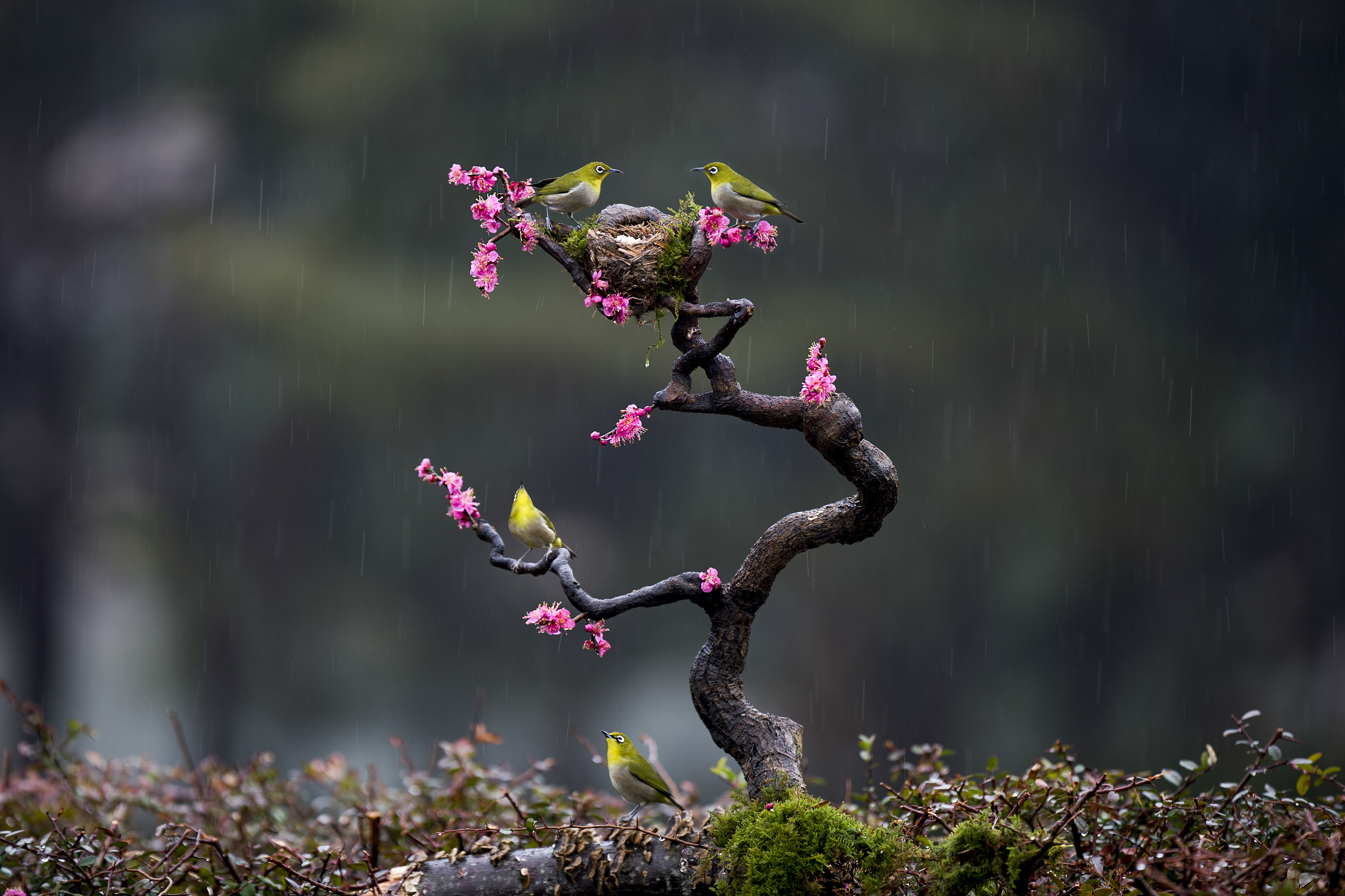 울산 문수국제 축구 경기장내 동박새 우중출사