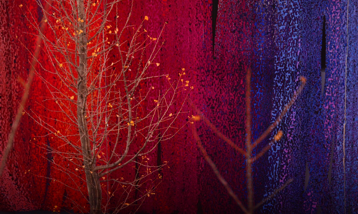 미술관의 벽은 붉게 물들었는데