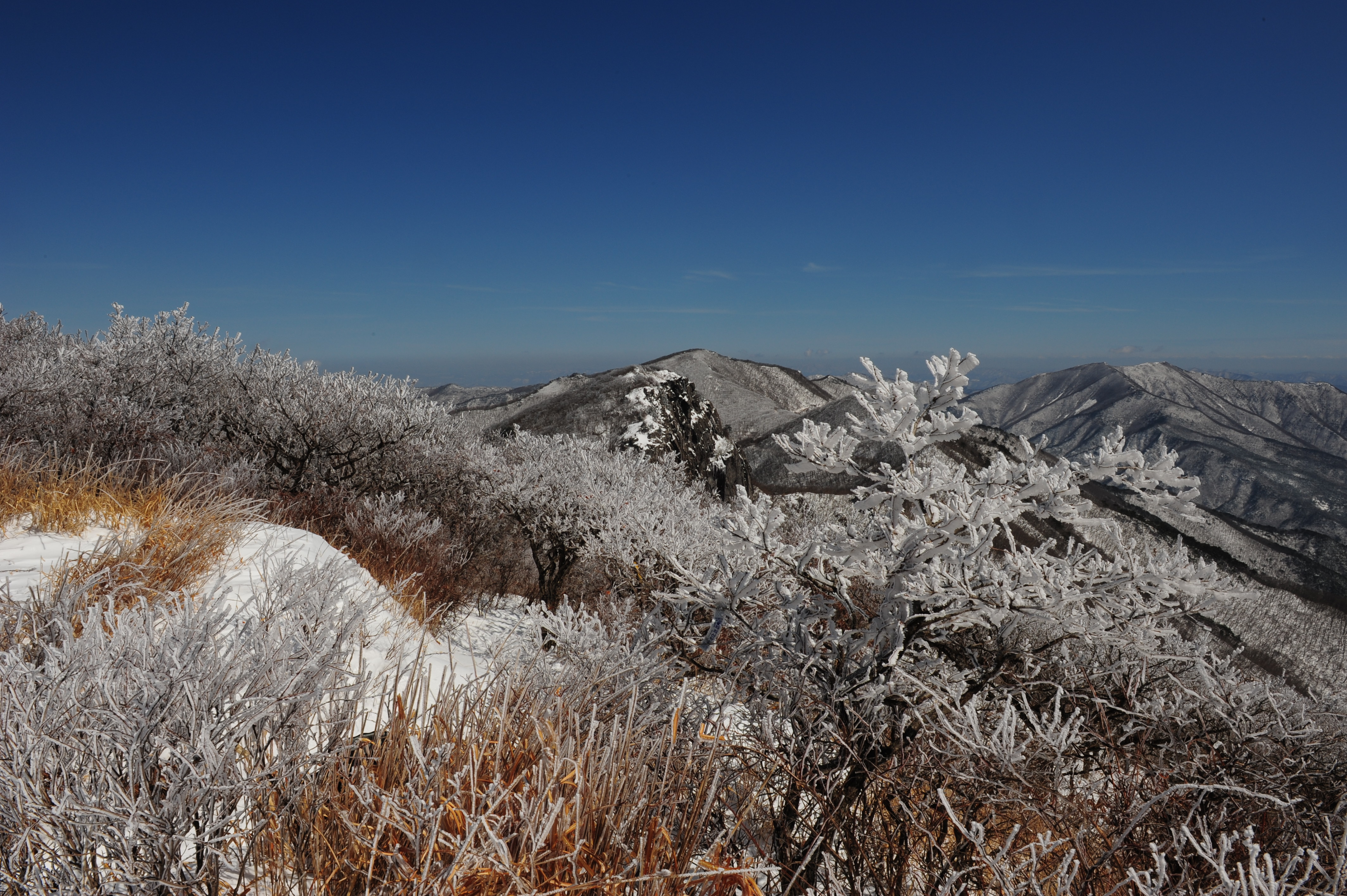 가지산에 눈꽃 배경.