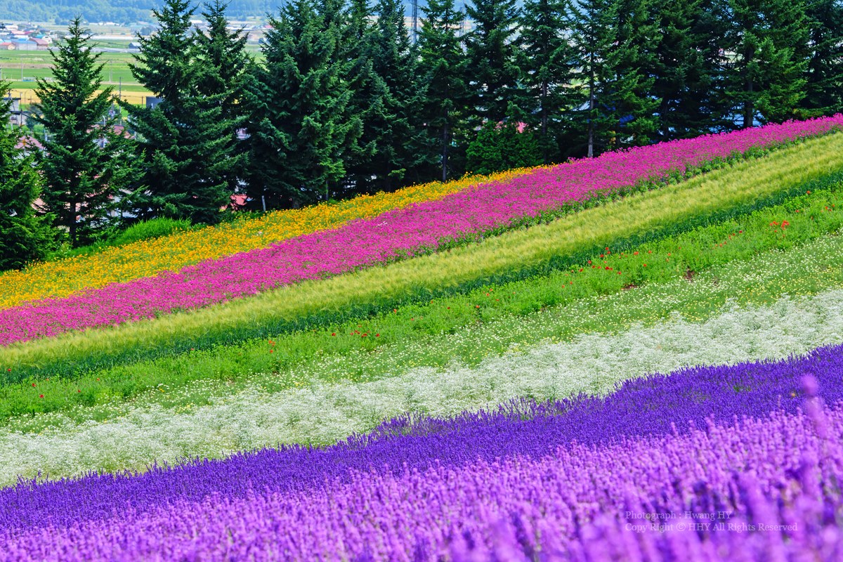 컬러풀한 꽃밭이 있는 비에이에서