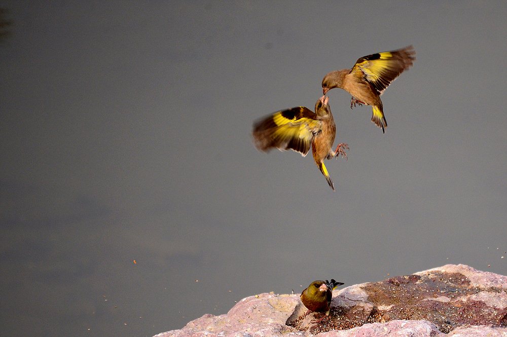 방울새들이 영역 다툼 끝에...