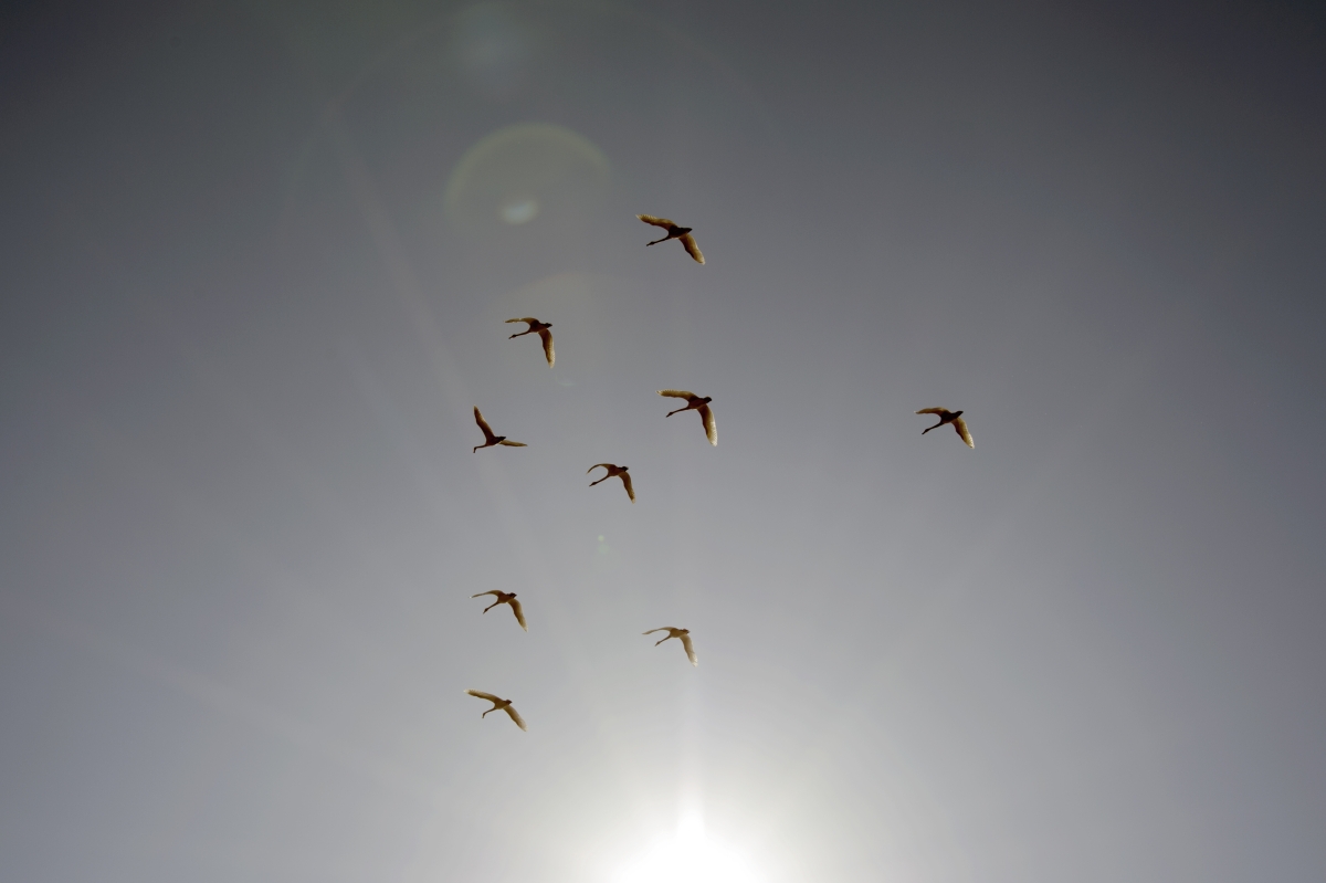 고니를 담다 하늘을 보니 편대를 이룬 새들의 모습에서 진주만 공습이 생각 났습니다