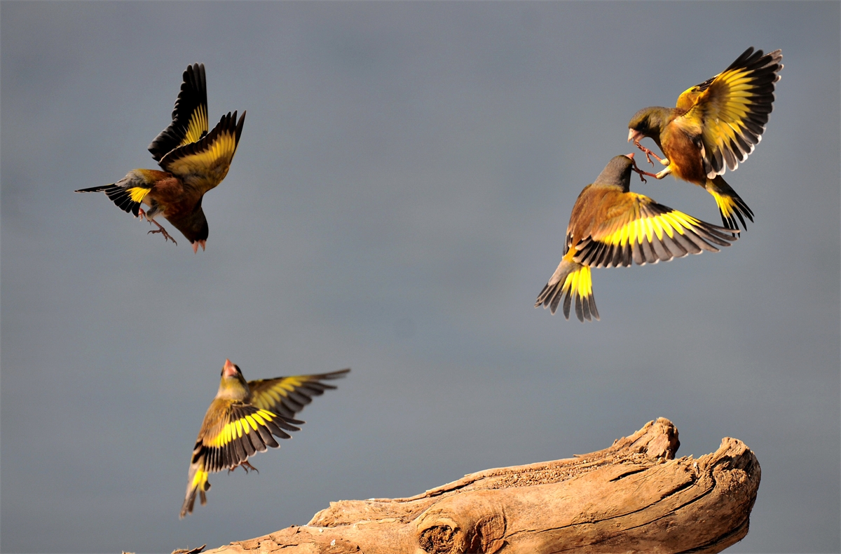방울새의 영역다툼모습입니다.